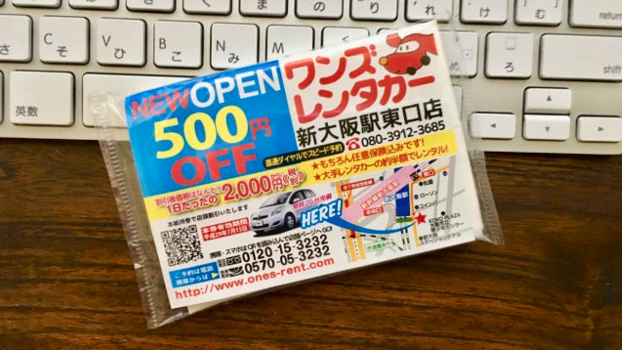 郵便ポストに入っていたティッシュ。約6-7年レンタカーを利用していない間に大手再編があったことは知っていましたが、レンタカー代といえばコンパクトカーで7-8,000円ぐらいの印象だったので「1日たったの2,000円から」の文字に衝撃。残念ながら4月からは少しずつインフレにしないといけないので物の値段が上がる時期ですが逆行のお値段。