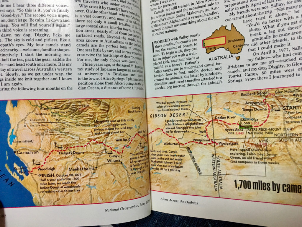 これがほんの40年前のことなんですね。毎夜星空を眺め、住所不定で野営し、貯水タンクや井戸水の跡地を頼り、清潔な砂漠を西へ。人生は1度しかないことを知っていても「安定」とか「皆と一緒」の呪縛に麻痺し、逸脱すると「変人」と言われるご時世。