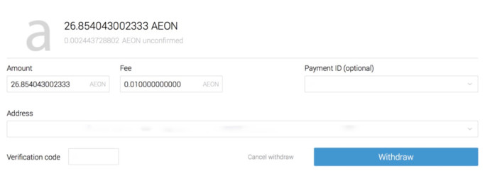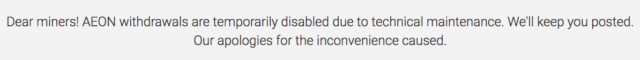 AEON withdrawals are temporarily disabled due to technical maintenance.