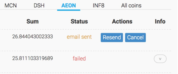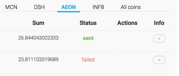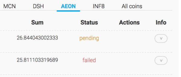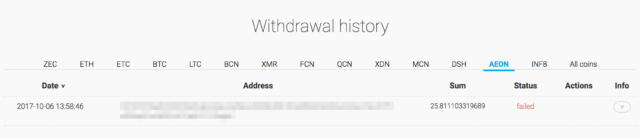 Aeon Withdrawal history 【failed】
