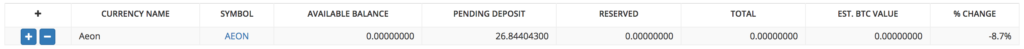 先日MinerGateからアルトコインのbytecoin(バイトコイン)をHitBTCに送付し、無事成功したことを書いたのですが、その時おまけで「Aeon(イオン)はどうすることもできず暫く放置」と書いたAeonが取引所で再開していたので再び送金練習したら失敗し、更に粘って送金したら成功したというメモです。