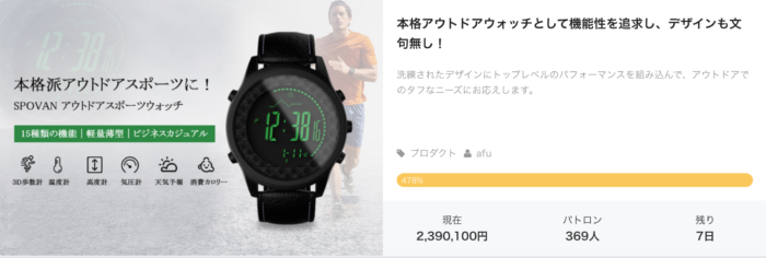 3番目は日本で分かりにくいと思いますが似て非なるニュアンスに以下のようなものがありました。あくまでも私見ですよ。この募集に際しアウトドアウォッチの説明書きには「今回私達は実用性、快適性、コスパなどお客様のニーズから考えて新たなSPOVANアウトドアウォッチを日本市場に進出させたいと思います。」って書いてありますが、この時計は既に日本をはじめ世界中のECで売られています。Amazonでも。クラウドファンディングの仕組みが販売チャネルのひとつに過ぎない場所へと価値を下げているように見えました。