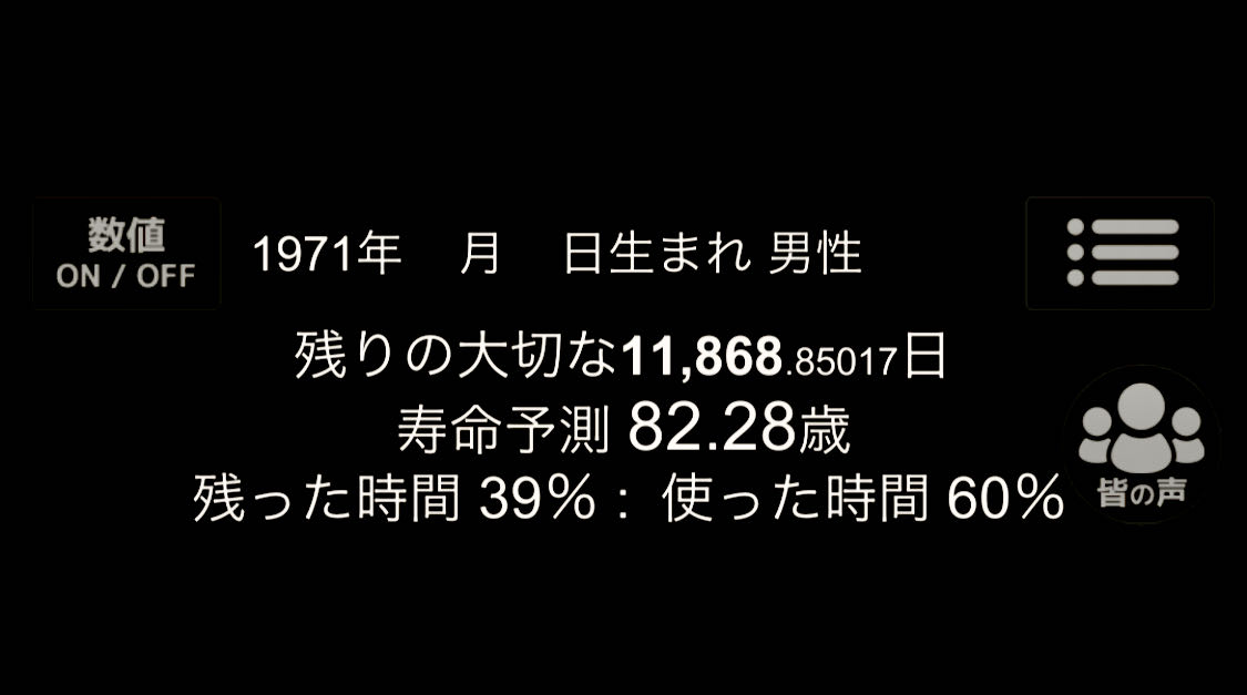 久しぶりに有名なアプリ「人生時計」で遊びました。