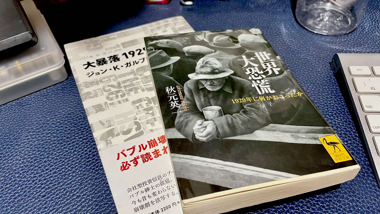 ちなみに後ろに写る本「大暴落 1929」は発端となった金融側の裏話が日時までばっちり詳細に記されているので、1世紀内に起こったノンフィクションといっても時代小説のような感覚で一気に読めちゃうのが良いのか悪いのか。