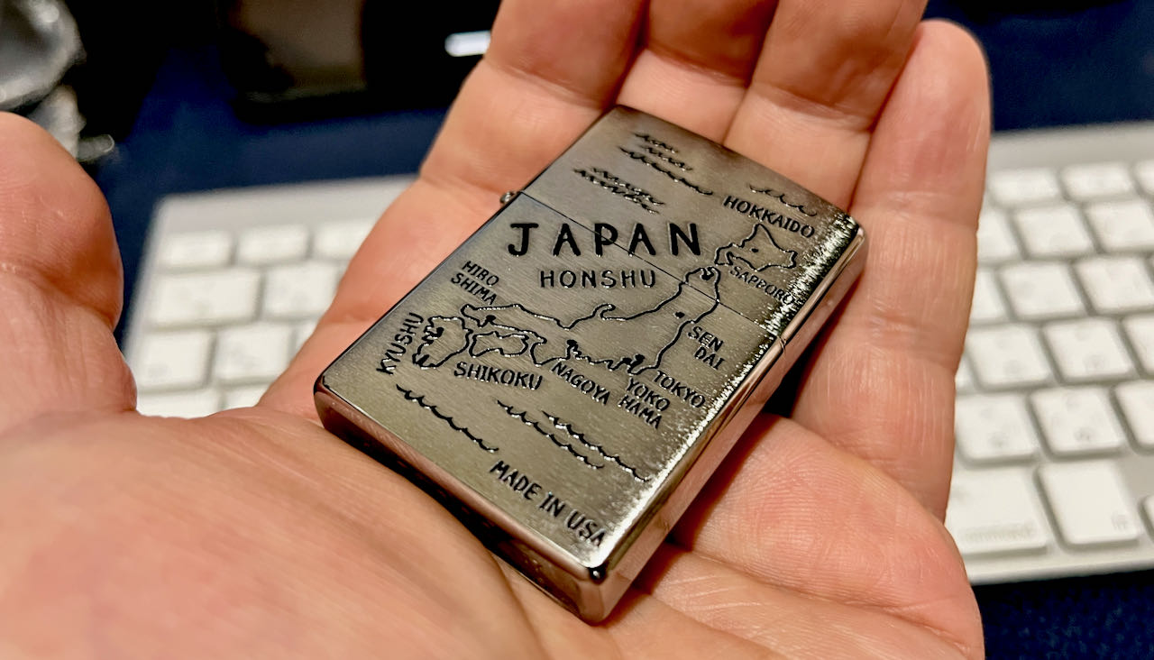 このライターはご存知ジッポー。ちょっと印象深くて買ったものですが、いわゆるベトナムジッポーと呼ばれるデザインの日本版の妄想復刻版です。