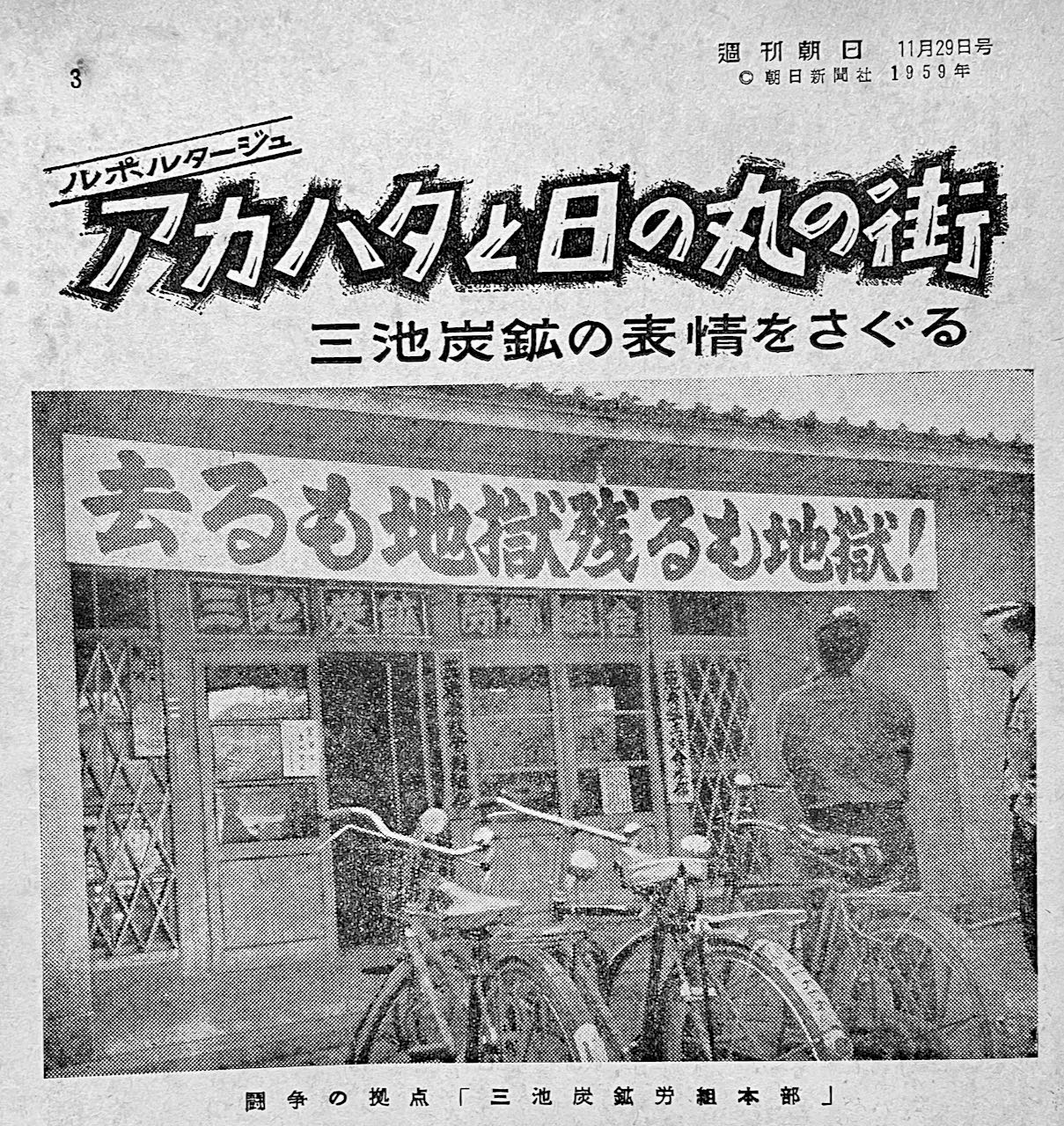 昭和34年(1959)12月、大量解雇の方針が伝えられると、労働者との間で激しい労働争議(三池争議)が発生し、約1年にわたるストライキが行われた。
